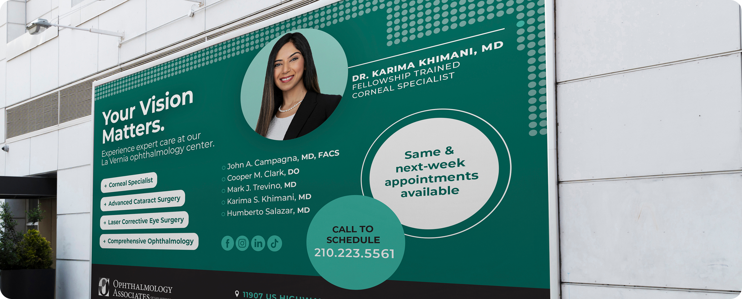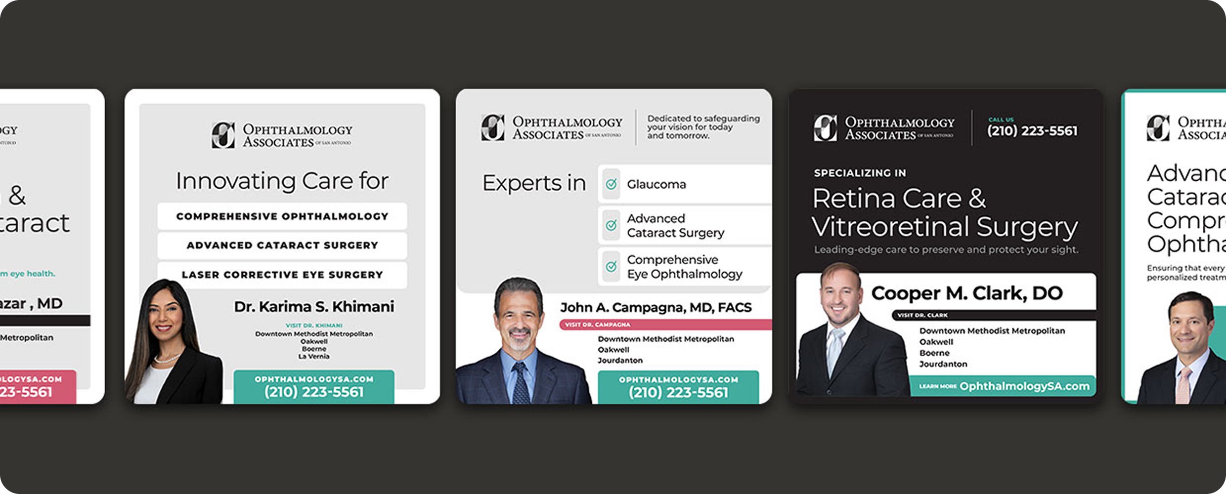 To reach patients more effectively, Medical Marketing Rx developed outreach campaigns that communicated Ophthalmology Associates of San Antonio’s expertise in comprehensive eye care, including cataract surgery, LASIK, glaucoma treatment, and pediatric ophthalmology. These campaigns highlighted both the practice’s trusted physicians and its advanced technology, positioning Ophthalmology Associates of San Antonio as the clear choice for eye care in San Antonio.
